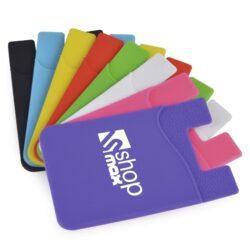 Silicone phone pocket sticks to your phone then pop your bank card in the phone pocket and you’re off!